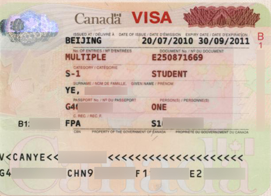 2010年7月20日获得加拿大留学签证