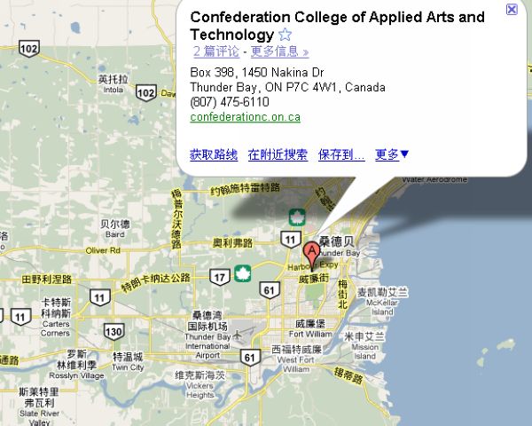 学校地址:主校区在雷湾,有7个学院的校园位于安大略省西北